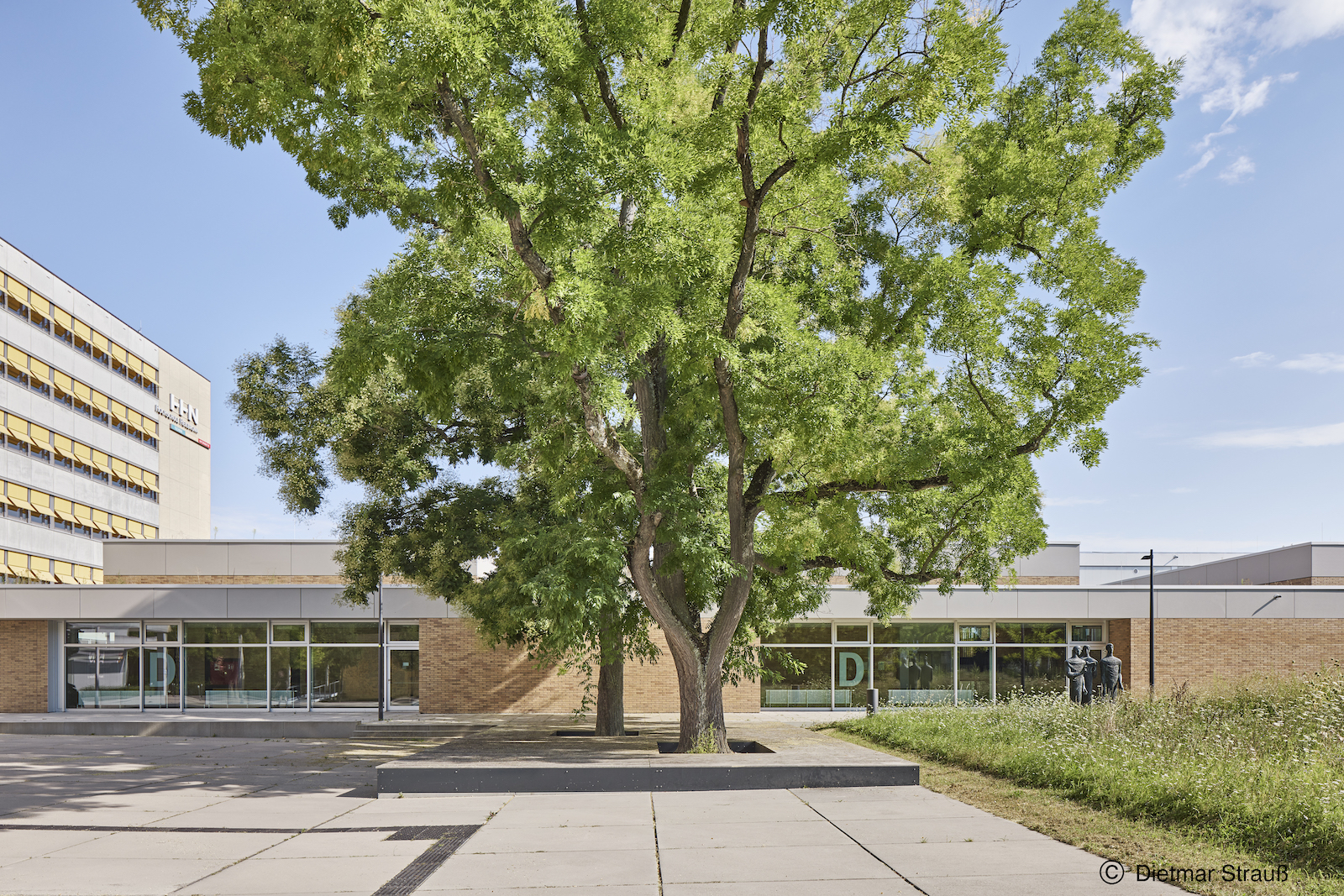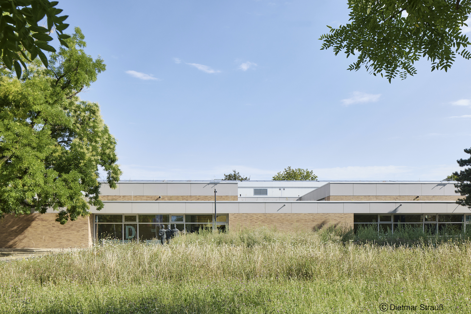 Die wesentliche Nutzung des Seminar- und Laborgebäudes bleibt in ihrer bisherigen Funktion und Erscheinung weitestgehend erhalten. Bei der Fassadensanierung wurden ursprüngliche Elemente wie erdfarbener Klinker und großformatige Betonelemente aufgegriffen und durch moderne, technisch optimierte und hochgedämmte Äquivalente ersetzt.